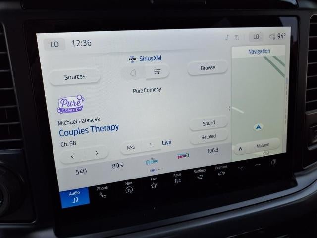 - EQUIPMENT GROUP 302A MID -inc: Chrome Door & Tailgate Handles, Wrapped Steering Wheel, Connected Navigation, 1-year trial, Navigation services require SYNC4 and FordPass Connect (optional on select vehicles), complimentary connect service and the FordPass app (see FordPass terms for details), Eligible vehicles receive a complimentary 1-year trial of navigation services that begins on the new vehicle warranty start date, Customers must unlock the navigation service trial by activating the eligible vehicle w/a FordPass member account, If not subscribed by the end of the complimentary period, the connected navigation service will revert to a moving-map and active routing will no longer be available, Connected service and features depend on compatible AT&T network availability, Evolving technology/cellular networks/vehicle capability may limit functionality and prevent operation of connected features, FordPass app, compatible w/select smartphone platforms, is available via a download, Message and data rates may apply, Black Painted Grille w/Chrome Center Bar, coast to coast black mesh, Intelligent Access w/Push Button Start, approach detection, 400W Cab & Bed Outlets, Dual-Zone Electronic Automatic Temperature Control, (DEATC), Power-Sliding Rear Window, Remote Start System w/Remote Tailgate Release, Heated Front Seats, 6" Angular Bright Anodized Step Bar, Ford Co-Pilot360 Assist 2.0, AEB oncoming, 360 Degree Camera, Evasive Steering Assist, Front Parking Sensors, Driver State Detection, Adaptive Cruise Control w/Stop & Go, lane centering and predictive speed assist, Towing Technology, pro trailer back up assist and pro trailer hitch assist, Chrome Single-Tip Exhaust, Power Glass Heated Sideview Mirrors, manual folding, turn signals, high-intensity LED security approach lamps, LED sideview mirror spotlights and chrome skull caps, Auto-Dimming Rearview Mirror *GROSS* (302A)
