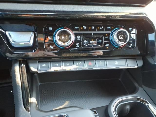 AT4 Premium Package: Off-Road High Clearance Step. Technology Package: Multicolor 15" Diagonal Head-Up Display; Bed View Camera; Rear Camera Mirror. Preferred Equipment Group 4SB: Trailer Side Blind Zone Alert; Ultrasonic Front and Rear Park Assist; Trailer Camera Provisions; Electric Rear-Window Defogger; Theft Deterrent System (unauthorized Entry); Black Chrome Grille Insert Bars; Front Rain-Sensing Wipers; Heavy-Duty Air Filter; Skid Plates; 120-Volt Interior Power Outlet; Heated Driver and Front Outboard Passenger Seating; Wireless Charging; Front Premium Floor Liners with Removable Carpet Insert; Color-Keyed Carpeting Floor Covering; OnStar Services Capable; Heated 2nd Row Outboard Seats; Power Front Passenger Windows with Express Up/down; Premium Bose 7-Speaker Sound System; Power Rear Windows with Express Down; Integrated Trailer Brake Controller; HD Surround Vision; Ventilated Driver and Front Passenger Seats; Power Rake and Telescoping Steering Column; Keyless Open and Start; Perimeter Lighting; Push Button Start; LED Cargo Area Lighting; Remote Vehicle Starter System; In-Vehicle Trailering System App; Hill Descent Control; 220 Amp Alternator; Floor-Mounted Center Console; Rear Cross Traffic Braking; GMC Pro Safety; Trailering Package; 2 USB Ports; 2 Charge/data USB Ports Inside Center Console; Off-Road Suspension; Steering Wheel Audio Controls; 2 type-C Charge-Only Rear USB Ports; 2-Speed Transfer Case; Deep-Tinted Glass; Spray-On Pickup Bedliner with GMC Logo; Red Recovery Hooks; SiriusXM with 360L Trial Subscription; Hitch View; Power Front Windows with Driver Express Up/down; Rear Pedestrian Detection; Wi-Fi Hotspot Capable; Rear Wheelhouse Liners; 20" X 9"