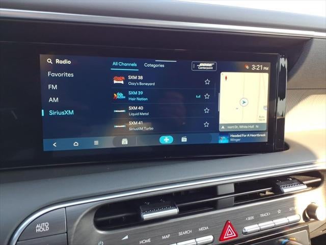 - Radio: Infotainment Navigation System -inc: Bose 14-speaker premium audio system w/Centerpoint and SoundTrue enhanced technology, 12.3" color touchscreen, wireless Apple CarPlay and Android Auto, HD Radio, Sirius XM, Passenger Talk 2.0 in-car intercom system, dynamic voice recognition, rear seat quiet mode, Bluetooth® hands-free w/wireless audio streaming, multiple device connection (up to 2 devices), USB connectivity, Bluelink + connected car services, Wi-Fi hotspot, steering wheel audio controls and Over-the-Air (OTA) software updates