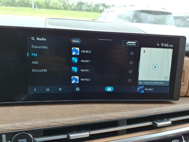 - Radio: AM/FM/HD Bose Premium Audio System -inc: 12 speakers including subwoofer, external amplifier, 12.3" wide touchscreen, wireless Apple CarPlay and Android Auto, Bluetooth® hands-free w/wireless audio streaming, dynamic voice recognition, USB connectivity, SiriusXM, wifi hotspot, Blue Link connected car system, navigation system including traffic flow w/incident data via HD Radio (HERE), OTA updates and rear seat quiet mode