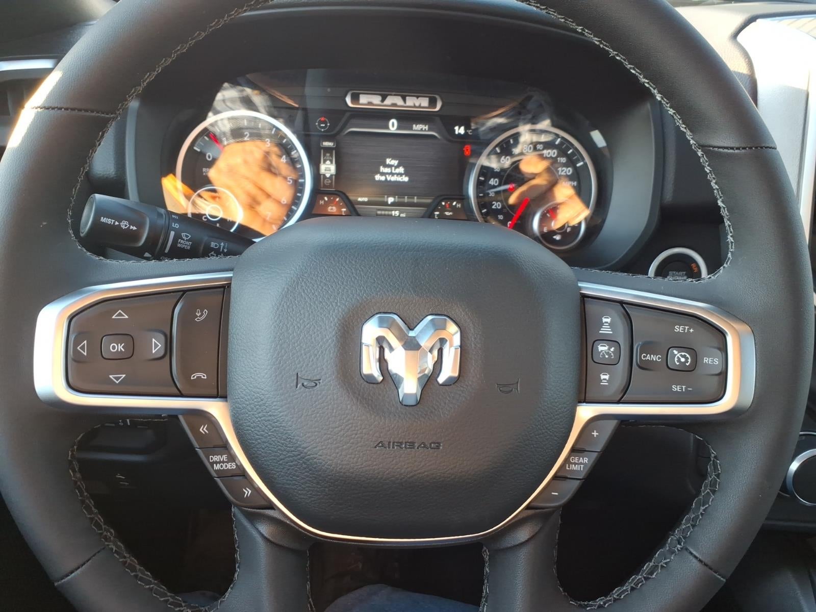 Quick Order Package 27Z Big Horn. Big Horn Level 2 Equipment Group: Google Android Auto; SiriusXM Radio Service; USB Host Flip; Power Adjustable Pedals; Leather Wrapped Steering Wheel; Integrated Voice Command with Bluetooth®; 12" Touchscreen Display; Glove Box Lamp; Auto Power-Folding Mirrors; 115V Auxiliary Rear Power Outlet; Media Hub with 2 Charge Only USBs; Heated Front Seats; Security Alarm; Black Premium Power Mirrors; Apple CarPlay; Premium Overhead Console; 9 Amplified Speakers with Subwoofer; Disassociated Touchscreen Display; Body Color Fender Flares; Remote Tailgate Release; 115V Auxiliary Power Outlet; LED Dome Lamp with On/off Switch; Universal Garage Door Opener; 2nd Row in Floor Storage Bins; Sun Visors with Illuminated Vanity Mirrors; LED Footwell Lighting; Rear Window Defroster; Integrated Center Stack Radio; Rear View Auto Dim Mirror; Rear Power Sliding Window; Connectivity - US/Canada; GPS Navigation; 4G LTE Wi-Fi Hot Spot; GPS Antenna Input; Overhead LED Lamps; Exterior Mirrors with Heating Element; Auto Dim Exterior Driver Mirror; SiriusXM with 360L; Global Telematics Box Module; Connected Travel and Traffic Services; Heated Steering Wheel; Configurable Drive Mode; 400W Inverter; HD Radio; Deluxe Cloth Bucket Seats; Uconnect 5 Navigation with 12.0" Display Radio; Exterior Mirrors with Supplemental Signals; Steering Wheel Mounted Audio Controls; Exterior Mirrors Courtesy Lamps; Air Conditioning ATC with Dual Zone Control; Cluster 7.0" TFT Color Display; Convex Wide-Angle Exterior Mirror Insert. Night Edition: 275/55R20 OWL All Season Tires; Accent Color Premium Power Mirrors; Exterior Mirrors with Supplemental Signals; Black Headlamp Bezels; Exterior Mirrors Courtesy Lamps; Grille Black Surround Black Mesh; Auto Power-Folding Mirrors; Exterior Mirrors with Heating Element; 20" X 9.0" Aluminum Painted Clad Wheels; Auto Dim Exterior Driver Mirror; Black Exterior Truck Badging; Anti-Spin Differential Rear Axle; Accent Color Door Handles; Accent Color Tailgate Handle; Black Interior Accents; Dual Exhaust with Black Tips; Body Color Front Bumper; Convex Wide-Angle Exterior Mirror Insert; Body Color Rear Bumper with Step Pads; Black Tail Lamp Bezels; RAM Grille Badge - Black; Black Painted Exterior Mirrors Caps. Quick Order Package 23Z Big Horn. 9 Amplified Speakers with Subwoofer. Anti-Spin Differential Rear Axle. MyFlexCare Service Plan. MOPAR Front and Rear Rubber Floor Mats. 3.92 Rear Axle Ratio. Rear Wheelhouse Liners. **Equipment listed is based on original vehicle build and subject to change. Please confirm the accuracy of the included equipment by calling the dealer prior to purchase.**