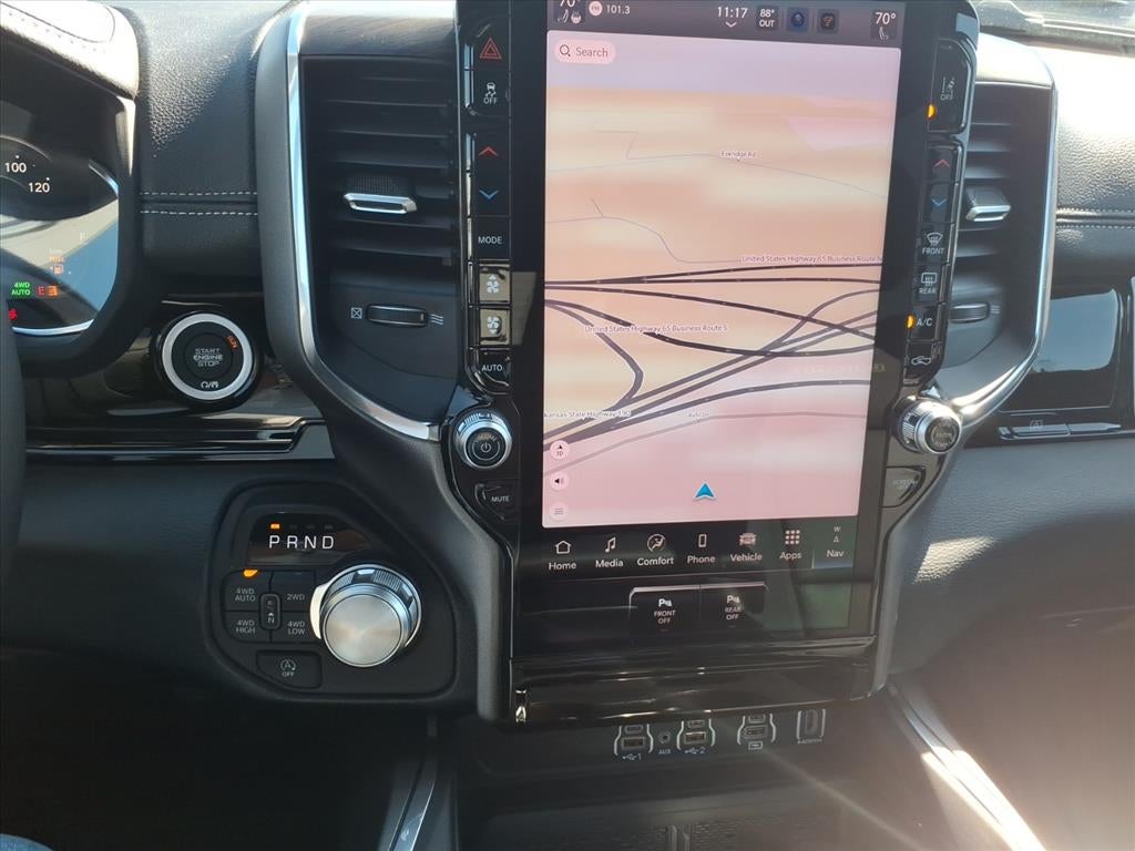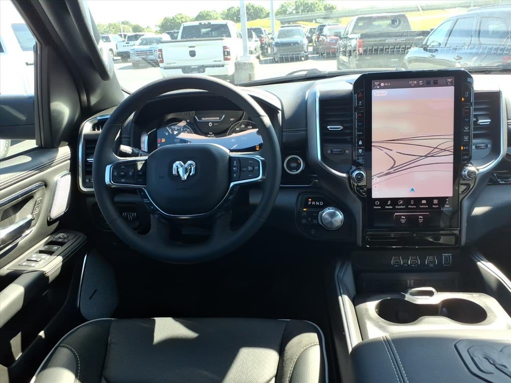 Quick Order Package 21H Laramie. Laramie Level 2 Equipment Group: Google Android Auto; SiriusXM Radio Service; USB Host Flip; Rain Sensitive Windshield Wipers; Integrated Center Stack Radio; Front Passenger Interactive Display; Integrated Voice Command with Bluetooth®; Connectivity - US/Canada; GPS Navigation; 4G LTE Wi-Fi Hot Spot; GPS Antenna Input; SiriusXM with 360L; Global Telematics Box Module; Connected Travel and Traffic Services; Apple CarPlay; Disassociated Touchscreen Display; Secondary Active Grille Shutters; HD Radio; Smartphone as a Key Capable; 14.4" Touchscreen Display; Dual Wireless Charging Pad; Uconnect 5 Nav with 14.4" Display; Harman/kardon 19 Speaker Premium Sound; Cluster 12" TFT Color Display; Power Tailgate. RamBox Cargo Management System. Tri-Fold Tonneau Cover. 33 Gallon Fuel Tank. Diamond Black Crystal PC. MOPAR Front and Rear Rubber Floor Mats. **Equipment listed is based on original vehicle build and subject to change. Please confirm the accuracy of the included equipment by calling the dealer prior to purchase.**