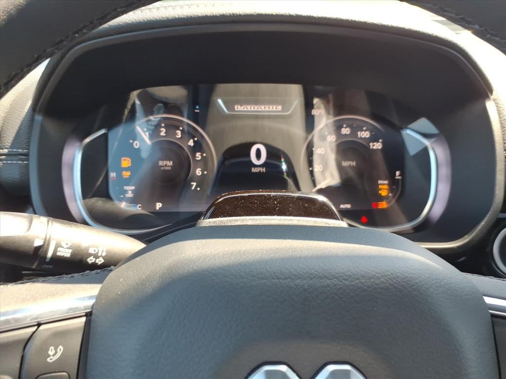 Advanced Safety Group II: Exterior Mirrors Approach Lamps; Active Driving Assist System; Surround View Camera System; Evasive Steer Assist; Drowsy Driver Detection; Intersection Collision Assist System; Traffic Sign Recognition; 12-Way/1-way Trailer Connector. Laramie Level 2 Equipment Group: Google Android Auto; SiriusXM Radio Service; USB Host Flip; Rain Sensitive Windshield Wipers; Integrated Center Stack Radio; Front Passenger Interactive Display; Integrated Voice Command with Bluetooth®; Connectivity - US/Canada; GPS Navigation; 4G LTE Wi-Fi Hot Spot; GPS Antenna Input; SiriusXM with 360L; Global Telematics Box Module; Connected Travel and Traffic Services; Apple CarPlay; Disassociated Touchscreen Display; Secondary Active Grille Shutters; HD Radio; Smartphone as a Key Capable; 14.4" Touchscreen Display; Dual Wireless Charging Pad; Uconnect 5 Nav with 14.4" Display; Harman/kardon 19 Speaker Premium Sound; Cluster 12" TFT Color Display; Power Tailgate. Quick Order Package 21H Laramie. Night Edition: Black Headlamp Bezels; Auto Power-Folding Mirrors; 22" X 9" Forged Aluminum Wheels; Exterior Mirrors with Heating Element; Proximity Approach/departure Lamps; Auto Dim Exterior Driver Mirror; Anti-Spin Differential Rear Axle; Accent Color Door Handles; Black Interior Accents; Body Color Front Bumper; Grille Surround 3 Black Texture 2 Black; Body Color Rear Bumper with Step Pads; RAM Grille Badge - Black; Black Painted Exterior Mirrors Caps; Exterior Mirrors Approach Lamps; Accent Color Premium Power Mirrors; Exterior Mirrors with Supplemental Signals; Sport Performance Hood; Exterior Mirrors Courtesy Lamps; Black Exterior Truck Badging; Accent Color Tailgate Handle; Exterior Mirrors with Memory; Dual Exhaust with Black Tips; Convex Wide-Angle Exterior Mirror Insert; Black Tail Lamp Bezels. Towing Technology Group: Trailer Hitch Line-Up Assist; Trailer Reverse Guidance. Trailer Tow Group: Trailer Brake Control; Chrome Exterior Mirrors; Trailer Reverse Steering Control; Black Power-Fold Trailer Tow Mirrors; Trailer Tire Pressure Monitoring System. Hands-Free Active Driving Assist System. 22" X 9" Forged Aluminum Wheels. Dual-Pane Panoramic Sunroof. Power Deployable Running Boards. RamBox Cargo Management System. Anti-Spin Differential Rear Axle. 33 Gallon Fuel Tank. Trailer Brake Control. Diamond Black Crystal PC. MOPAR Front and Rear Rubber Floor Mats. **Equipment listed is based on original vehicle build and subject to change. Please confirm the accuracy of the included equipment by calling the dealer prior to purchase.**