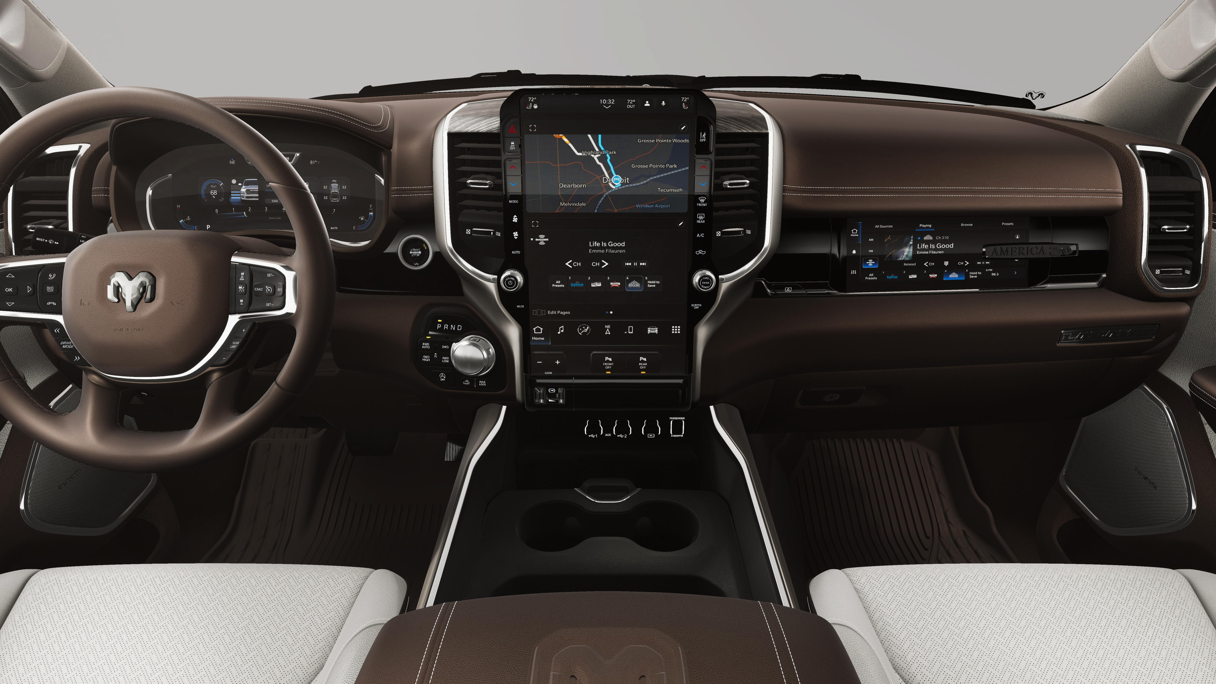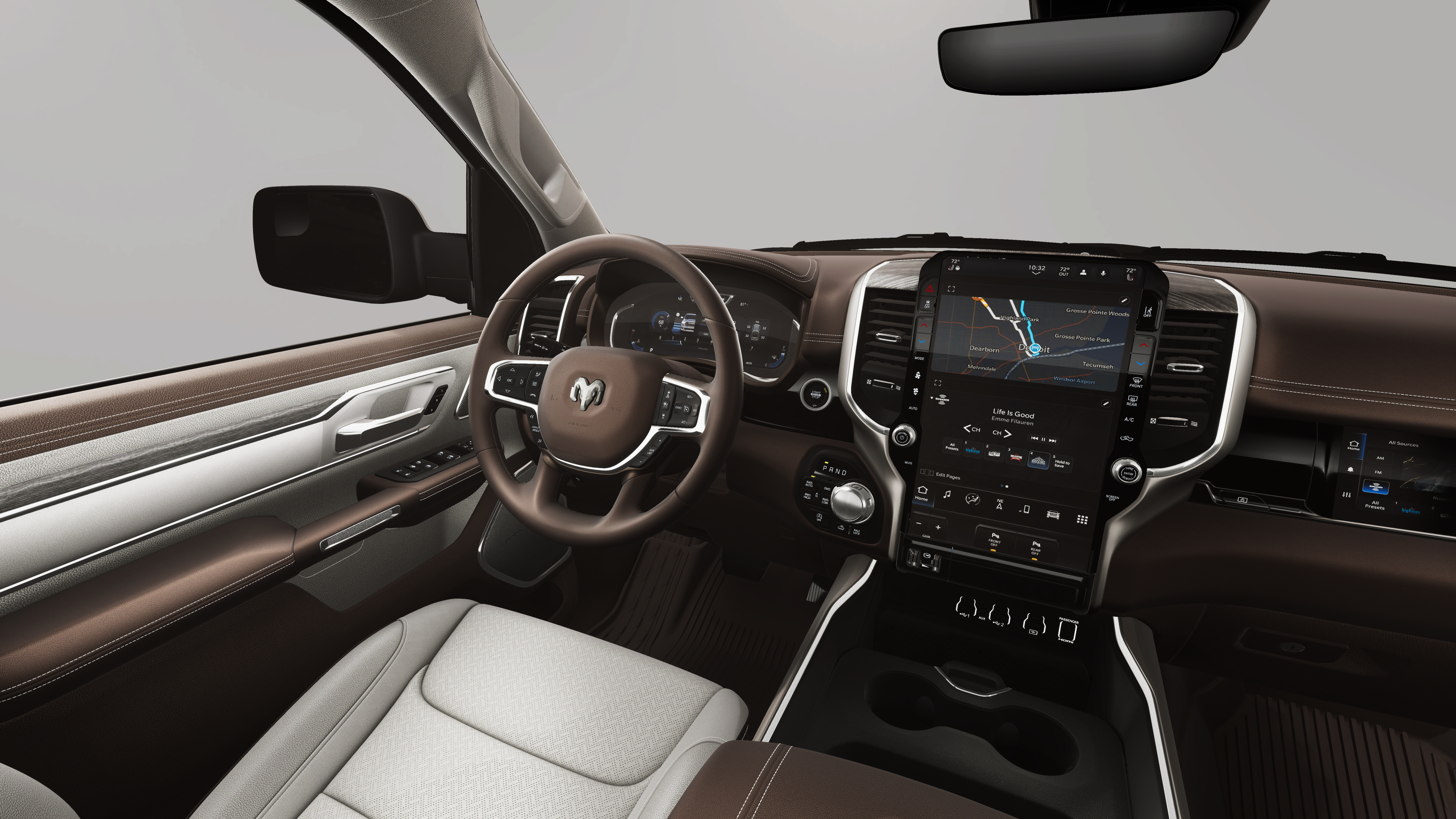 Chrome Appearance Group: Bright Day Light Opening Moldings; Wheel to Wheel Side Steps. Quick Order Package 27H Laramie. Laramie Level 2 Equipment Group: Off-Road Information Pages; SiriusXM Radio Service; USB Host Flip; Rain Sensitive Windshield Wipers; 14.4" Touchscreen Display; Integrated Center Stack Radio; Front Passenger Interactive Display; Integrated Voice Command with Bluetooth®; Connectivity - US/Canada; Uconnect 5 Nav with 14.4" Display; GPS Navigation; 4G LTE Wi-Fi Hot Spot; Harman/kardon 19 Speaker Premium Sound; SiriusXM with 360L; Connected Travel and Traffic Services; Cluster 12" TFT Color Display; Power Tailgate. Off Road Group: Off Road Decals; Steering Gear Skid Plate; Falken Brand Tires; 275/55R20 BSW All-Terrain Tires; Raised Ride Height; Front Extra Heavy Duty Shock Absorbers; Rear Extra Heavy Duty Shock Absorbers; Full Size Spare Tire; Tow Hooks; E-Locker Rear Axle; Transfer Case Skid Plate; Fuel Tank Skid Plate; Selec-Speed Control. Bed Utility Group: MOPAR Spray in Bedliner; Truck Bed Cargo Divider; MOPAR Deployable Bed Step; MOPAR 4 Adjustable Cargo Tie-Down Hooks; Exterior 115V AC Outlet. RamBox Cargo Management System. Wheel to Wheel Side Steps. E-Locker Rear Axle. Trailer Brake Control. MyFlexCare Service Plan. MOPAR Front and Rear Rubber Floor Mats. 3.92 Rear Axle Ratio. **Equipment listed is based on original vehicle build and subject to change. Please confirm the accuracy of the included equipment by calling the dealer prior to purchase.**