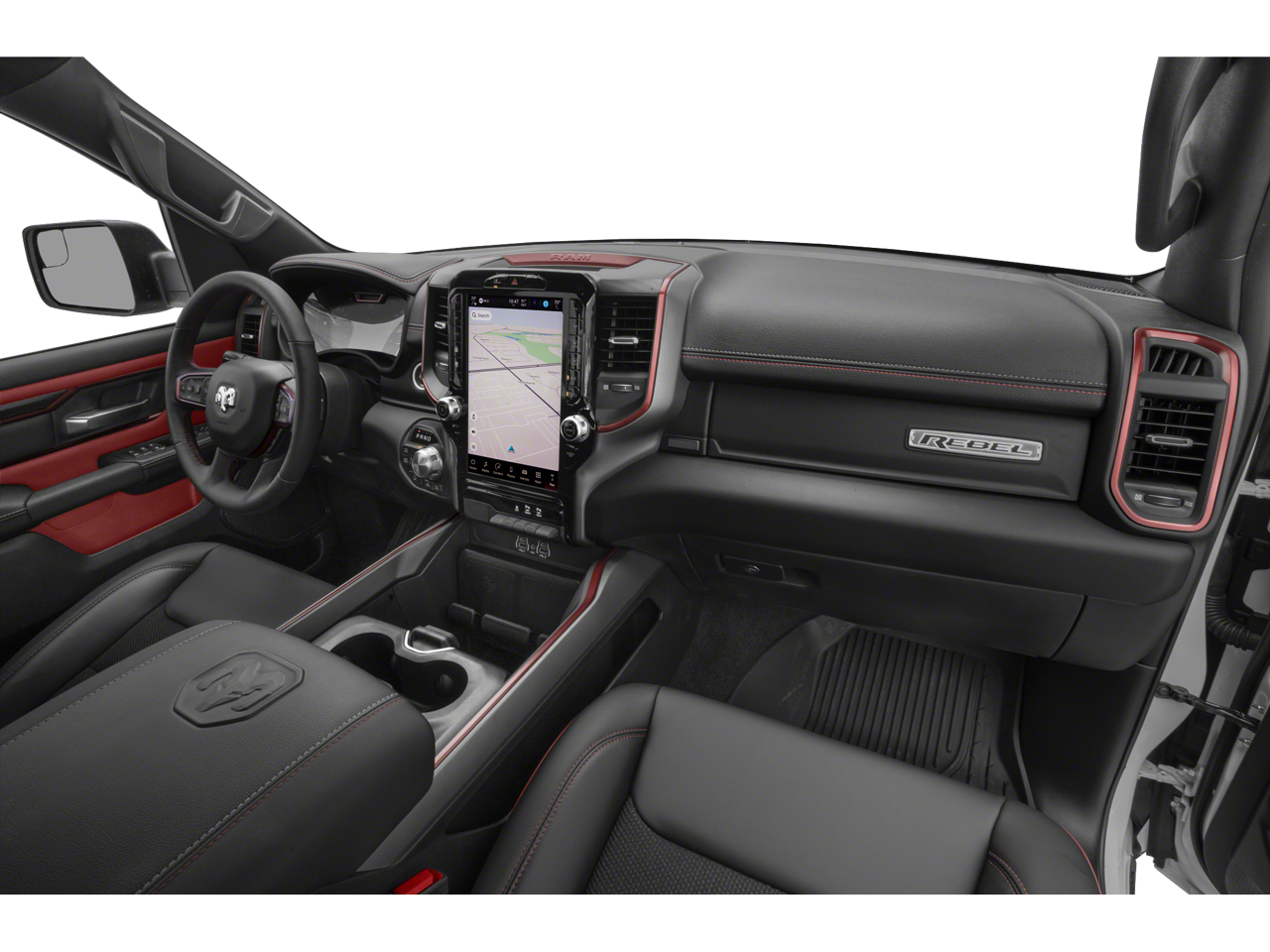 Technology Group: Head Up Display; LED CHMSL Lamp; Digital Rearview Mirror; 12-Way/1-way Trailer Connector. Bed Utility Group: MOPAR Spray in Bedliner; Truck Bed Cargo Divider; MOPAR 4 Adjustable Cargo Tie-Down Hooks; Exterior 115V AC Outlet; MOPAR Deployable Bed Step Center Mount. Quick Order Package 21W Rebel. Rebel Level 2 Equipment Group: Google Android Auto; SiriusXM Radio Service; USB Host Flip; Rear Window Defroster; Rain Sensitive Windshield Wipers; Integrated Center Stack Radio; Power Adjustable Pedals with Memory; Front Passenger Interactive Display; Integrated Voice Command with Bluetooth®; Power 2-Way Passenger Lumbar Adjust; Connectivity - US/Canada; Auto Power-Folding Mirrors; GPS Navigation; 4G LTE Wi-Fi Hot Spot; 115V Auxiliary Rear Power Outlet; GPS Antenna Input; Media Hub with 2 Charge Only USBs; Exterior Mirrors with Heating Element; Proximity Approach/departure Lamps; Auto Dim Exterior Driver Mirror; SiriusXM with 360L; Accent Color Door Handles; Global Telematics Box Module; Connected Travel and Traffic Services; Heated Second Row Seats; Power Adjust 8-Way Front Passenger Seat; Security Alarm; Apple CarPlay; Black Painted Exterior Mirrors Caps; Off-Road Information Pages; Exterior Mirrors Approach Lamps; Disassociated Touchscreen Display; HD Radio; Smartphone as a Key Capable; 14.4" Touchscreen Display; Accent Color Premium Power Mirrors; Dual Wireless Charging Pad; Exterior Mirrors with Supplemental Signals; Exterior Mirrors Courtesy Lamps; Uconnect 5 Nav with 14.4" Display; Harman/kardon 19 Speaker Premium Sound; 2-Door Passive Entry. Front Door Locks; Accent Color Tailgate Handle; Exterior Mirrors with Memory; Driver Seat Memory; Power Tailgate; Convex Wide-Angle Exterior Mirror Insert; Radio/driver Seat/mirrors/pedals Memory. Lux Leather Trimmed Bucket Seats. Multi-Function Tailgate. RamBox Cargo Management System. Trailer Brake Control. Forged Blue Metallic. Forged Blue Metallic. **Equipment listed is based on original vehicle build and subject to change. Please confirm the accuracy of the included equipment by calling the dealer prior to purchase.**