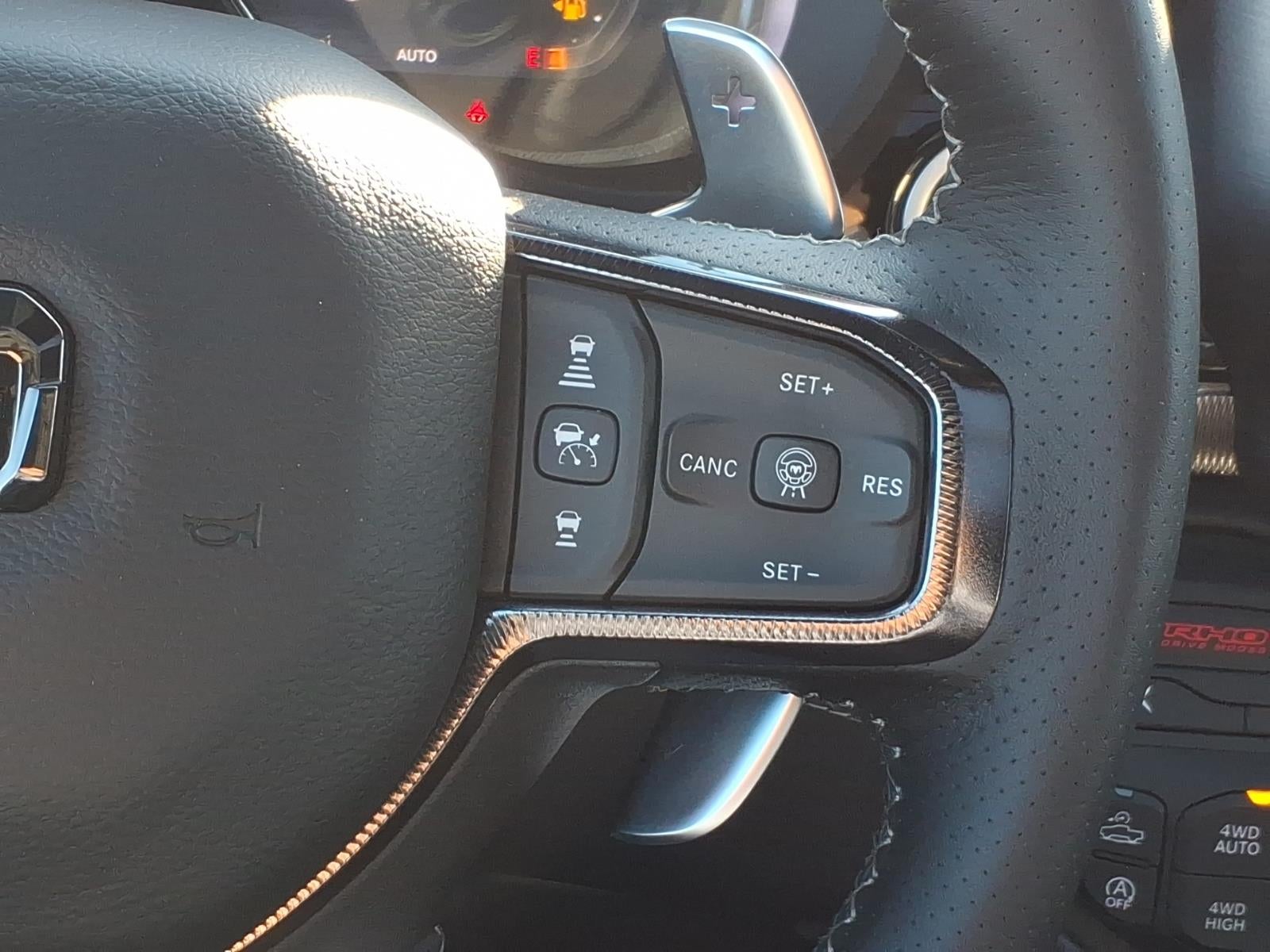 Quick Order Package 22Y RHO. RHO Level 1 Equipment Group: Full Length Premium Upgraded Floor Console; SiriusXM Radio Service; USB Host Flip; Surround View Camera System; Rain Sensitive Windshield Wipers; Integrated Center Stack Radio; LED CHMSL Lamp; Power Adjustable Pedals with Memory; Front Passenger Interactive Display; Integrated Voice Command with Bluetooth®; Connectivity - US/Canada; Traffic Sign Recognition; GPS Navigation; 4G LTE Wi-Fi Hot Spot; Hands-Free Active Driving Assist System; Front Passenger Power Seat Back Massage; Head Up Display; Connected Travel and Traffic Services; Evasive Steer Assist; Heated Second Row Seats; Drowsy Driver Detection; Driver Power Seat Back Massage; Intersection Collision Assist System; Disassociated Touchscreen Display; Leather/carbon Flat-Bottom Steering Wheel; HD Radio; Smartphone as a Key Capable; 14.4" Touchscreen Display; Driver/passenger Wrapped Assist Handles; Dual Wireless Charging Pad; Uconnect 5 Nav with 14.4" Display; Ventilated Rear Seats; Rear 60/40 Folding Split Recline Seat; 240 Amp Alternator; Ventilated Front Seats; Harman/kardon 19 Speaker Premium Sound; Premium Wrapped Instrument Panel Bezel; Exterior Mirrors with Memory; Luxury Front Door Trim Panel; Real Carbon Fiber Interior Accents; Driver Seat Memory; Power Tailgate; Radio/driver Seat/mirrors/pedals Memory; Digital Rearview Mirror; 12-Way/1-way Trailer Connector. Dual-Pane Panoramic Sunroof. Tri-Fold Tonneau Cover. Forged Blue Metallic. **Equipment listed is based on original vehicle build and subject to change. Please confirm the accuracy of the included equipment by calling the dealer prior to purchase.**