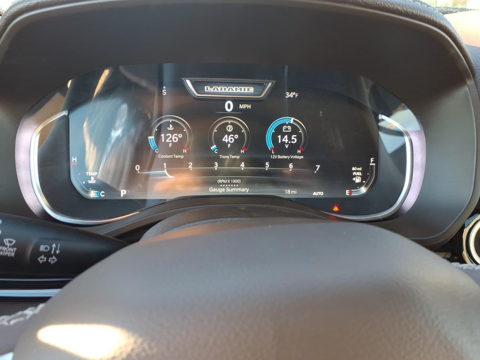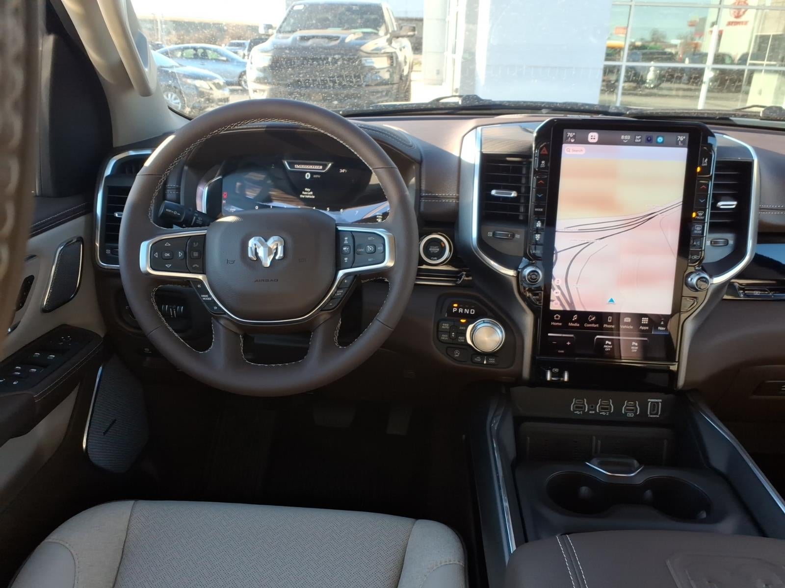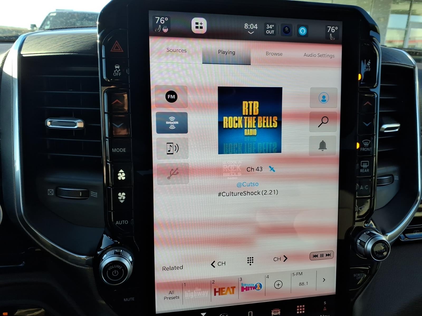 Chrome Appearance Group: Bright Day Light Opening Moldings; Wheel to Wheel Side Steps. Quick Order Package 27H Laramie. Laramie Level 2 Equipment Group: Off-Road Information Pages; SiriusXM Radio Service; USB Host Flip; Rain Sensitive Windshield Wipers; 14.4" Touchscreen Display; Integrated Center Stack Radio; Front Passenger Interactive Display; Integrated Voice Command with Bluetooth®; Connectivity - US/Canada; Uconnect 5 Nav with 14.4" Display; GPS Navigation; 4G LTE Wi-Fi Hot Spot; Harman/kardon 19 Speaker Premium Sound; SiriusXM with 360L; Connected Travel and Traffic Services; Cluster 12" TFT Color Display; Power Tailgate. Off Road Group: Off Road Decals; Steering Gear Skid Plate; Falken Brand Tires; 275/55R20 BSW All-Terrain Tires; Raised Ride Height; Front Extra Heavy Duty Shock Absorbers; Rear Extra Heavy Duty Shock Absorbers; Full Size Spare Tire; Tow Hooks; E-Locker Rear Axle; Transfer Case Skid Plate; Fuel Tank Skid Plate; Selec-Speed Control. Bed Utility Group: MOPAR Spray in Bedliner; Truck Bed Cargo Divider; MOPAR Deployable Bed Step; MOPAR 4 Adjustable Cargo Tie-Down Hooks; Exterior 115V AC Outlet. RamBox Cargo Management System. Wheel to Wheel Side Steps. E-Locker Rear Axle. Trailer Brake Control. Diamond Black Crystal PC. MyFlexCare Service Plan. MOPAR Front and Rear Rubber Floor Mats. 3.92 Rear Axle Ratio. **Equipment listed is based on original vehicle build and subject to change. Please confirm the accuracy of the included equipment by calling the dealer prior to purchase.**