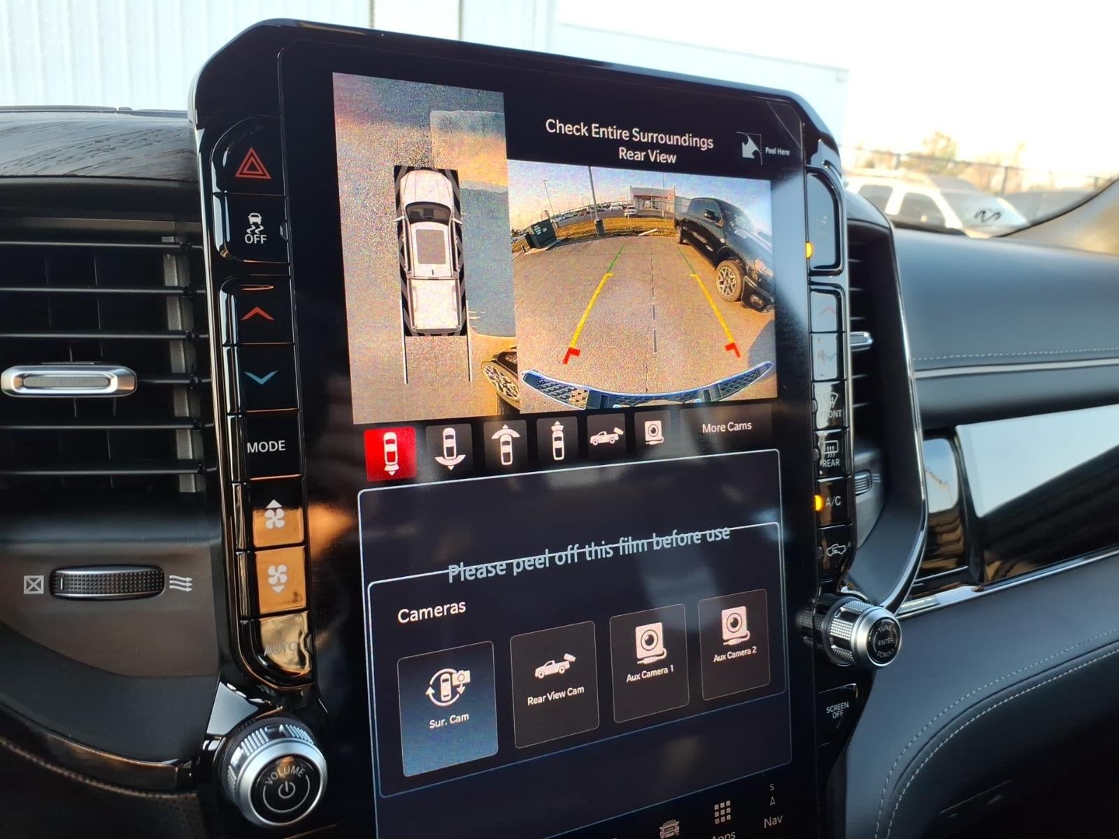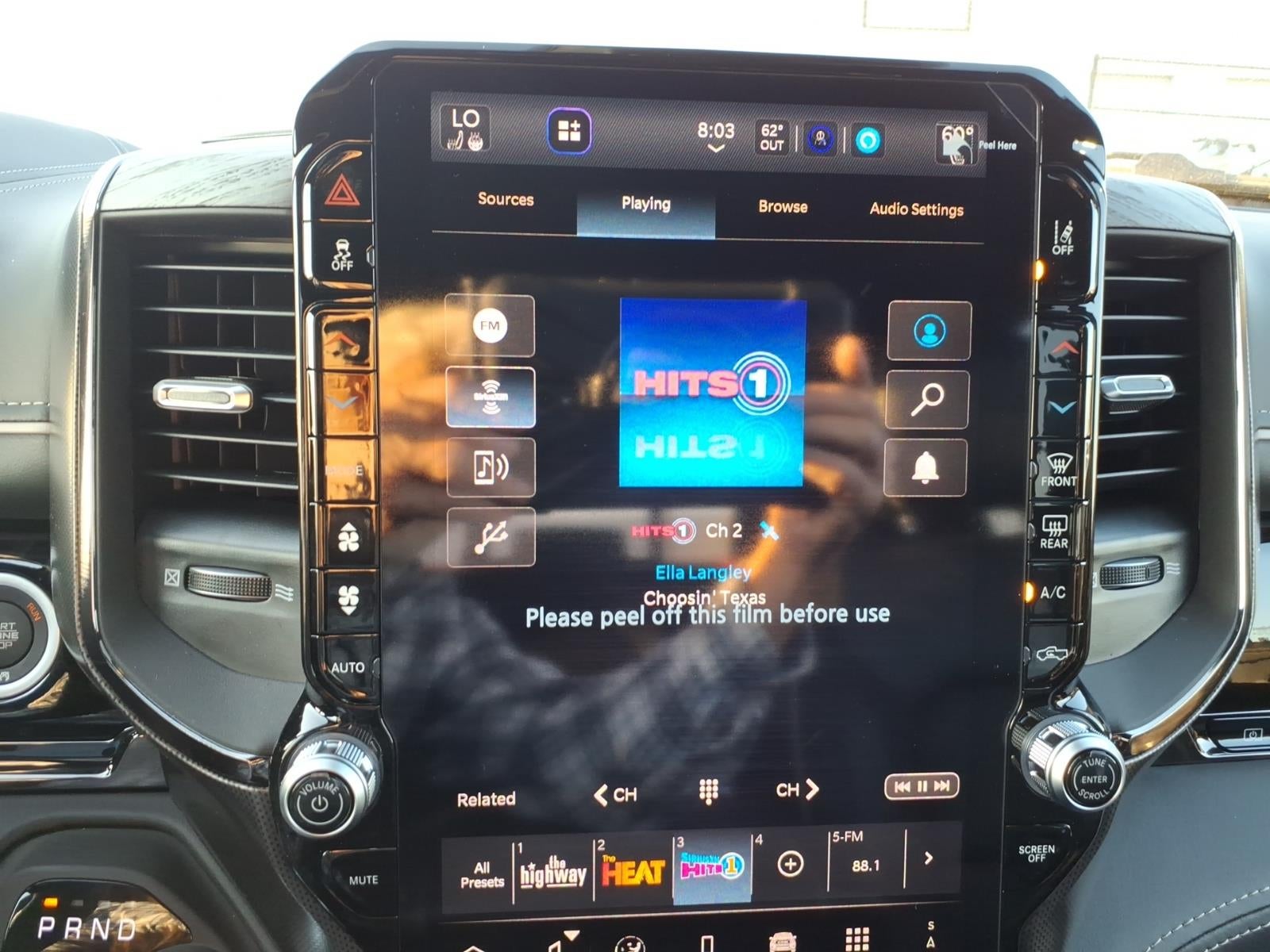 Quick Order Package 27M Limited. Limited Level A Equipment Group: Google Android Auto; SiriusXM Radio Service; USB Host Flip; Surround View Camera System; Integrated Center Stack Radio; LED CHMSL Lamp; Tri-Fold Tonneau Cover; Integrated Voice Command with Bluetooth®; Connectivity - US/Canada; Traffic Sign Recognition; GPS Navigation; 4G LTE Wi-Fi Hot Spot; RamBox Cargo Management System; GPS Antenna Input; Hands-Free Active Driving Assist System; Aux Battery; SiriusXM with 360L; Global Telematics Box Module; Head Up Display; Connected Travel and Traffic Services; Evasive Steer Assist; Drowsy Driver Detection; Exterior 115V AC Outlet; Intersection Collision Assist System; Apple CarPlay; Disassociated Touchscreen Display; HD Radio; Smartphone as a Key Capable; 14.4" Touchscreen Display; Uconnect 5 Nav with 14.4" Display; 240 Amp Alternator; Digital Rearview Mirror; 12-Way/1-way Trailer Connector. Quick Order Package 22M Limited. 22" X 9" Premium Paint/polished Wheels. Multi-Function Tailgate. Tri-Fold Tonneau Cover. Trailer Brake Control. Diamond Black Crystal PC. MyFlexCare Service Plan. **Equipment listed is based on original vehicle build and subject to change. Please confirm the accuracy of the included equipment by calling the dealer prior to purchase.**