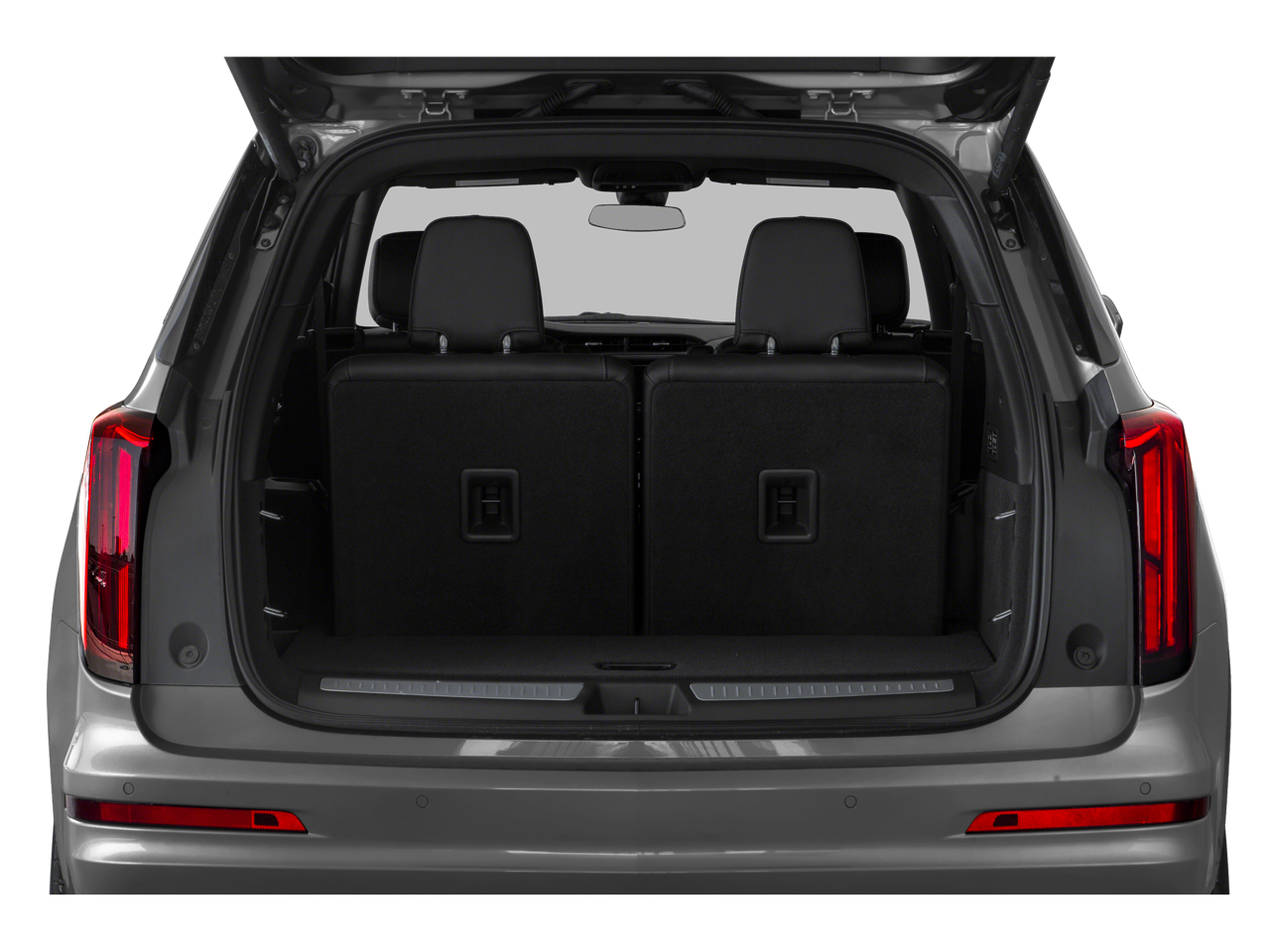 - Opens or closes when the system senses the key fob and the driver extends their foot under the left-hand side of the rear bumper over an image of the Cadillac Crest projected under the vehicle