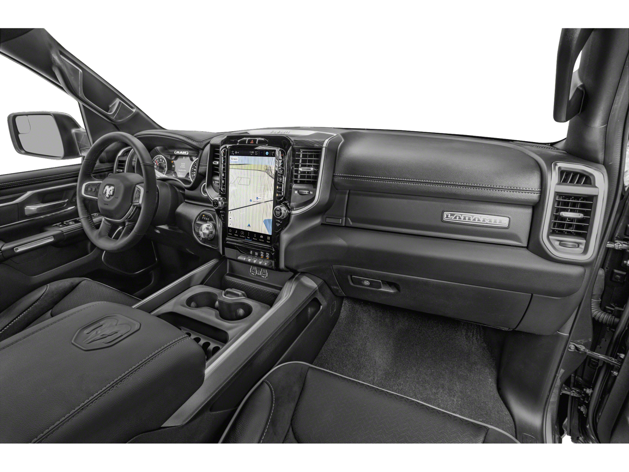 Quick Order Package 27H Laramie. Sport Appearance Package. Laramie Level B Equipment Group: Google Android Auto; SiriusXM Radio Service; USB Host Flip; Rear Window Defroster; Blind Spot and Cross Path Detection; Rain Sensitive Windshield Wipers; Integrated Center Stack Radio; ParkSense Front/rear Park Assist with Stop; For Details. Visit DriveUconnect.com; For More Info. Call 800-643-2112; Rear Power Sliding Window; Integrated Voice Command with Bluetooth®; Connectivity - US/Canada; 12" Touchscreen Display; GPS Navigation; 4G LTE Wi-Fi Hot Spot; GPS Antenna Input; SiriusXM with 360L; Global Telematics Box Module; Connected Travel and Traffic Services; Front LED Fog Lamps; LED Reflector Headlamps; Foam Bottle Insert (door Trim Panel); Apple CarPlay; Disassociated Touchscreen Display; HD Radio; Remote Tailgate Release; Harman/kardon 19 Speaker Premium Sound; Auto High Beam Headlamp Control; Electric Shift on Demand Transfer Case; Front Door Accent Lighting; 2nd Row in Floor Storage Bins; Rear Door Accent Lighting. Leather Trimmed Bucket Seats. Anti-Spin Differential Rear Axle. ParkSense Front/rear Park Assist with Stop. Class IV Receiver Hitch. Trailer Brake Control. MOPAR Front and Rear Rubber Floor Mats. **Equipment listed is based on original vehicle build and subject to change. Please confirm the accuracy of the included equipment by calling the dealer prior to purchase.**