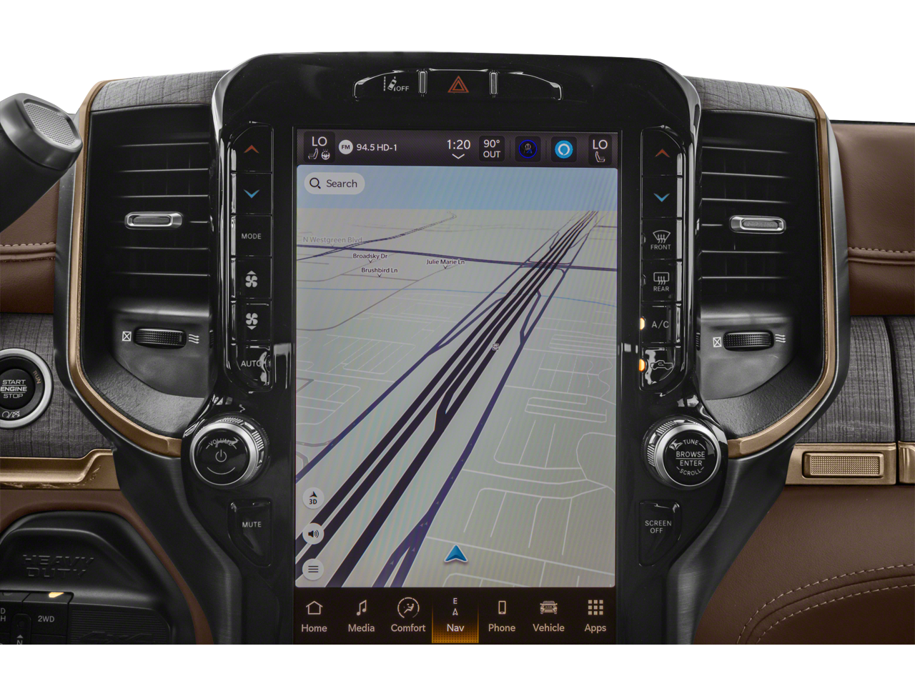 Quick Order Package 2HM Limited. Limited Level 1 Equipment Group: Google Android Auto; SiriusXM Radio Service; Center Stop Lamp with Cargo View Camera; Surround View Camera System; Vendor Painted Cargo Box; For Details. Visit DriveUconnect.com; For More Info. Call 800-643-2112; Integrated Voice Command with Bluetooth®; LED Bed Lighting; Connectivity - US/Canada; Power Deployable Running Boards; 12" Touchscreen Display; GPS Navigation; 4G LTE Wi-Fi Hot Spot; RamBox Cargo Management System; Adaptive Steering System; GPS Antenna Input; SiriusXM with 360L; Global Telematics Box Module; Connected Travel and Traffic Services; Alexa Built-In; Trailer Reverse Guidance; Vendor Painted Cargo Box Tracking; Apple CarPlay; Off-Road Information Pages; Selectable Tire Fill Alert; Trailer Tow Pages; Disassociated Touchscreen Display; HD Radio; Ramcharger Wireless Charging Pad; Uconnect 5 Navigation with 12.0" Display Radio; 4 Adjustable Cargo Tie-Down Hooks; Full Speed Forward Collision Warning Plus; MOPAR Spray in Bedliner; 17 Speaker Harman/kardon Premium Sound; Truck Bed Cargo Divider; Adaptive Cruise Control with Stop; Digital Rearview Mirror; Lane Keep Assist. Night Edition: Black Exterior Truck Badging; Black Ram Head Tailgate Badge; Body Color Grille Surround; Black Headlamp Bezels; Sport Performance Hood; Black Grille Limited; 20" X 8.0" Cast Aluminum Black Wheels; Black Wheel Center Hub; Black Tail Lamp Bezels. Tow Technology Plus Group: Trailer Reverse Steering Control; Digital 3.0 Rear View Auto Dimming Mirror. Auto Level Rear Air Suspension. Power Sunroof. 5th Wheel/gooseneck Towing Prep Group. MOPAR Deployable Bed Step. Center Stop Lamp with Cargo View Camera. Adaptive Steering System. Pearl White. Clearance Lamps. **Equipment listed is based on original vehicle build and subject to change. Please confirm the accuracy of the included equipment by calling the dealer prior to purchase.**
